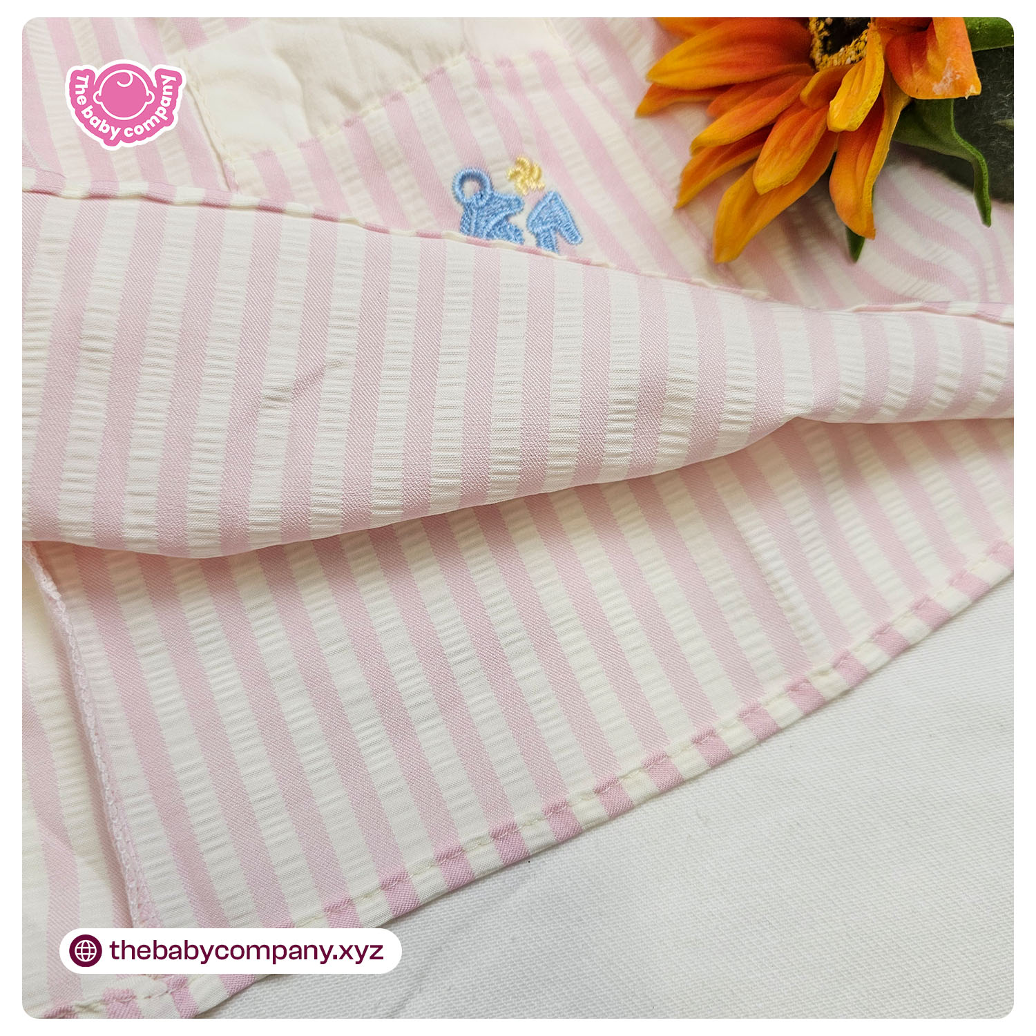 Fabric: Soft breathable cotton fabric with pink stripe pattern
